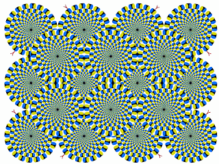 Your eyes are making them move. To test this, stare at one spot in each picture for a few seconds and everything will stop moving; OR look at the black center of each circle in the first picture, and it will stop moving; but when you move your eyes to the next black center, the previous one will move after you take your eyes away from it.