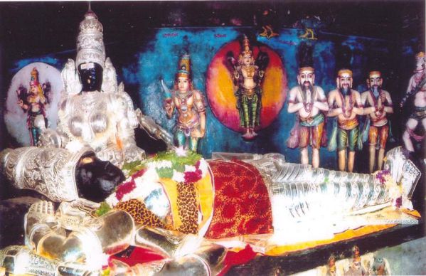 Wonderful darshan. This is where Lord Shiva as Pallikondeeswarar is present in a reclining posture with His head on the lap of Goddess Parvathi, surrounded by all Gods, devars and rishis. You can find an assembly of the whole Kailasam around - something you will not find anywhere else. I could not take my eyes of the Lord, and the Gurukal had to literally chase me away!
